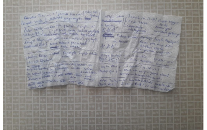 Daha Fazla OkuBebeğiyle tutuklandıktan sonra dün tahliye edilen Meryem Haydaroğlu’nun eline tutuklu kadınlar bir peçete sıkıştırdı. Peçeteye yazılanlar Türkiye’deki adalet sisteminin...